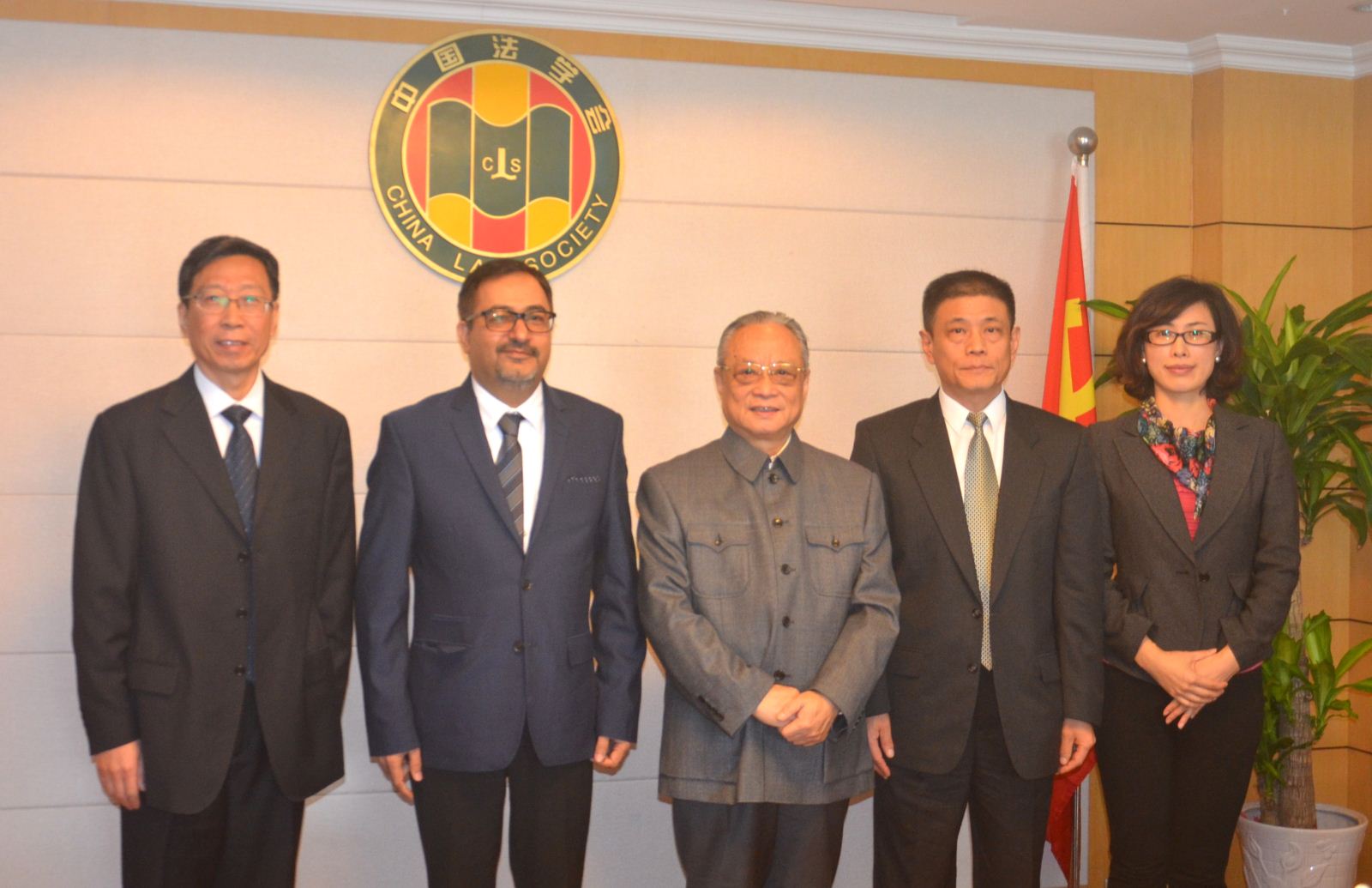 中国法学会办公室主任纪大新与外联部副主任杨小平陪同会见。