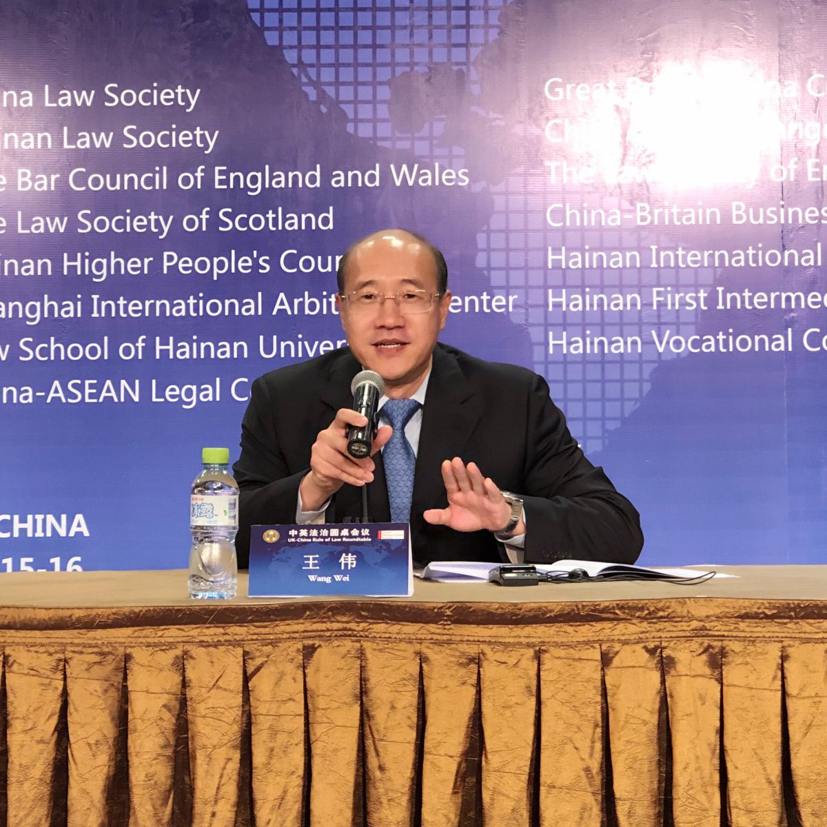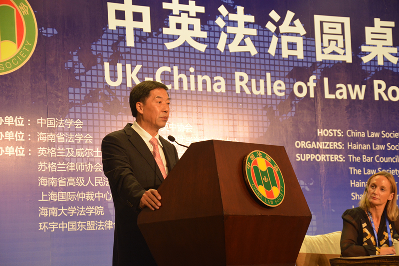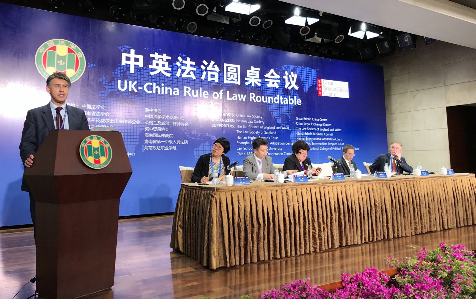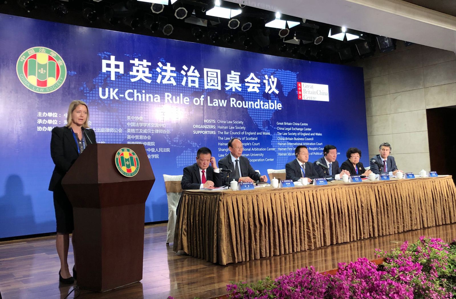 2018年11月15日,由中国法学会与英国英中协会主办,海南省法学会与中国法学学术交流中心承办的第三届“中英法治圆桌会议”在海口隆重开幕。会议主题为“加强国际商事争端解决机制合作 助力自由贸易区建设”。来自中英两国的120位法学法律界、企业界和政府部门代表出席会议。中国法学会副会长张鸣起,英中协会执行主任葛珍珠在开幕式上致辞。世界贸易组织上诉机构前主席、大法官张月姣,最高人民法院民四庭庭长张勇健,英格兰及威尔士出庭律师公会中国部主任林英明,环宇中国东盟法律合作中心理事长、海南仲裁委员会(海南国际仲裁院)主任施文,中国国际经济贸易仲裁委员会仲裁院副院长赵健,中国仲裁法学研究会专职副秘书长陈建,中华全国律师协会副会长章靖忠,海南省高级人民法院审判委员会专职委员皮修雁,海南省司法厅副厅长林琳,北京大学(深圳)国际法学院杰出常驻教授、最高人民法院国际商事专家委员会专家委员范思深,英国有效争议解决中心亚太地区主任范维敦等出席会议并做专题发言。海南省法学会党组书记、会长肖若海,中国法学学术交流中心主任尹宝虎以及葛珍珠分别在闭幕式上做会议总结讲话。