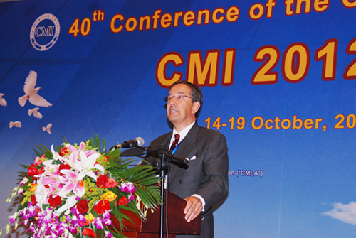 由中国海商法协会承办的国际海事委员会第40届大会10月15日在京举行。全国人大常委会副委员长华建敏出席开幕式并发表演讲。中国海商法协会主席、中远集团总公司董事长魏家福、国际海事委员会主席Karl-Johan Gombrii先生、中国国际贸易促进委员会(简称“中国贸促会”)会长万季飞、最高人民法院审判委员会专职委员杜万华、中国法学会常务副会长刘飏、中国海商法协会副主席中远集团总法律顾问刘国元、中国海商法协会副主席人保财险公司副总裁王乐枢、中国海商法协会副主席中外运长航集团副总裁姚平、中国海商法协会副主席最高人民法院民四厅副厅长王彦君、中国海商法协会副主席大连海事大学博士生导师司玉琢教授、中国海商法协会副主席、海利律师事务所李海律师、中国海商法协会顾问杨良宜、刘书剑先生以及国家有关部门负责同志,以及49个国家和地区的海商法协会负责人、法官、学者、律师、工商界代表和12个国际组织的代表约400人出席。中国海商法协会副主席、中国贸促会副会长董松根主持了开幕式。