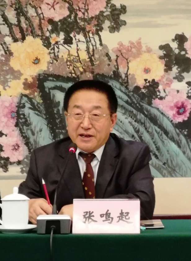 中国法学会副会长、海峡两岸关系法学研究会会长张鸣起主持座谈交流