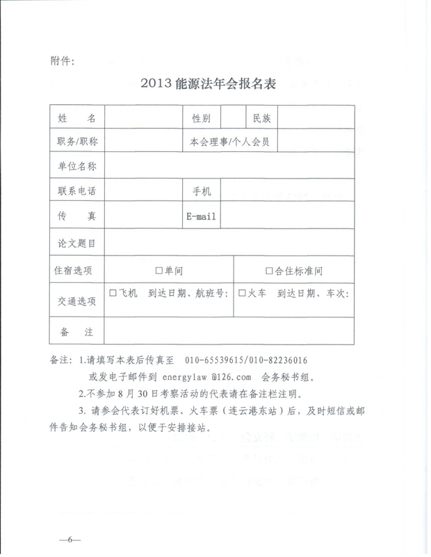 附件下载: 能源法研究会2013年年会报名表