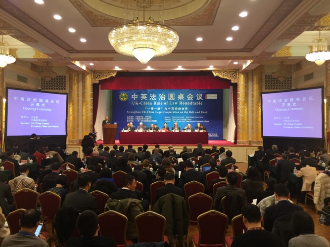 2016年11月24日,由中国法学会与英国英中协会主办,中国法学学术交流中心承办,“一带一路”法律服务合作联盟协办的“中英法治圆桌会议”在北京隆重开幕。会议主题为“一带一路”与中英法治合作。来自中英两国的200多位法学法律界、企业界和政府部门代表出席会议。中国法学会会长王乐泉出席开幕式并致辞,中国法学会党组书记、常务副会长陈冀平主持开幕式。英国最高法院前院长菲利普斯勋爵,中央政法委副秘书长徐显明,苏格兰国家法律顾问办公室主任、英国司法部驻上议院发言人吉恩勋爵,司法部副部长熊选国,英中协会主席戴维信爵士先后在开幕式致辞。中国法学会副会长张鸣起,中国法学会副会长张苏军,最高人民法院副院长陶凯元,最高人民检察院副检察长孙谦,以及中华全国律师协会会长王俊峰、英中贸易协会首席执行官傅仲森、英格兰及威尔士出庭律师公会主席香塔尔•德里斯(女)、英格兰及威尔士律师协会会长罗伯特•伯恩斯,苏格兰律师协会会长艾利•怀斯曼(女)、英国驻华大使馆政务参赞韩瑞芬等出席会议。中国法学会副会长张鸣起、英中协会主任裴仕高分别在闭幕式上致辞,对圆桌会议取得的成果进行总结。