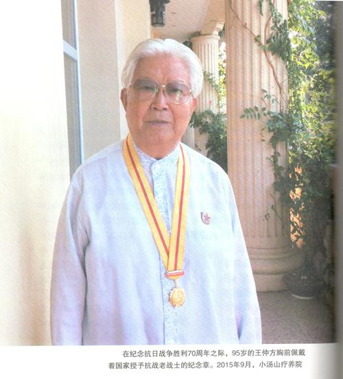 2015年9月,在纪念抗日战争胜利70周年之际,95岁的王仲方胸前佩戴着国家授予抗战老战士的纪念章