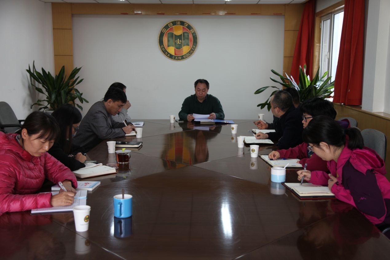 2018年3月30日,机关服务中心党支部召开党员大会,支部书记肖育斌主持。会议认真学习了习近平总书记在第十三届全国人大一次会议闭幕式上的重要讲话和在十九届中央政治局第四次集体学习时的讲话,传达了中国法学会学习贯彻全国“两会”精神要求的有关内容。