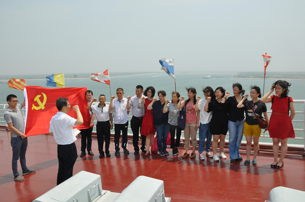 为深入学习贯彻党的十九大精神,纪念中国共产党成立97周年,7月20日,办公室、外联部党支部共同组织党员同志和入党积极分子到国防教育示范基地——天津泰达航母主题公园,开展了以“不忘初心,重温入党志愿书”为主题的党日活动。活动过程中,办公室支部书记纪大新同志带领党员同志们面对庄严的党旗,重温了入党誓词。连志慧、王蕊、弥晓军、魏丽莎四位同志代表支部党员重温了入党志愿书,入党积极分子黄钰萧同志宣读了入党申请书。随后,大家紧密联系学习、思想和工作实际,特别是围绕“不忘初心,重温入党志愿书”这一主题展开了深入交流讨论。