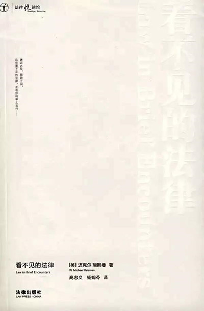 关于对法律的理解和认知,除阅读上述经典著作外,我认为值得推荐的还有美国耶鲁大学法学院迈克尔·瑞斯曼(W. Michael Reisman)所著的《看不见的法律》一书。这本书读起来轻松有趣,但字里行间蕴藏着作者基于独特视角对法律所做的更全面观察和理解。