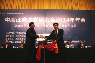 开幕式上,鲍绍坤为武汉大学资本市场法治研究中心揭牌。