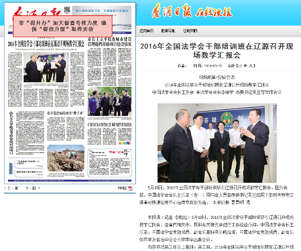 辽源日报头版报道2016年全国法学会干部培训班现场教学汇报会(点击左侧蓝色字体或者上面图片可查看原文报道)