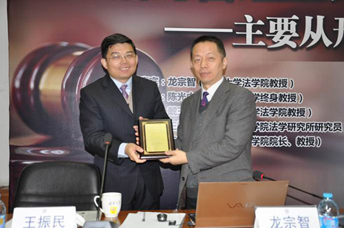 王振民教授向龙宗智教授颁发演讲纪念牌