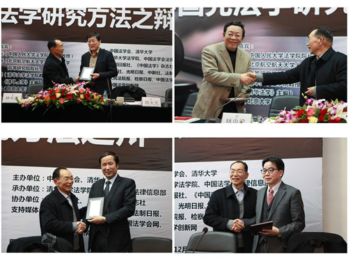在4位主讲嘉宾各自发表观点之后,主讲嘉宾之间、台上与台下,展开了一个多小时犀利、坦诚的互动交流,精彩纷呈、高潮不断。夜幕渐渐降临,主持人不得已结束了辩论。在向4位主讲嘉宾颁发演讲纪念牌之前,中国法学会林中梁秘书长发表了热情洋溢、慷慨激昂的讲话。