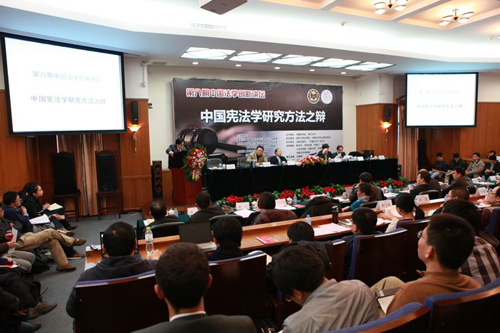 本期讲坛在形式上比以往有重大突破,几位主讲人从各自的研究立场、研究方法出发,对我国社会转型中涌现出的各种宪法问题多角度地进行切入,形成方法论层面的交锋、不同学派之争。随着宪法学研究方法的多元化,规范宪法学、社会宪法学、政治宪法学、宪法解释学、宪法经济学、宪法人类学等宪法流派或宪法部门正在我国逐渐形成。在研究方法上拥有共同见识的学者自发地形成学术群体或学术流派,通过争鸣和批判,不断反思自己的观点、完善自己的理论,促使对方完善自己的观点,使理论研究不断走向深入。本期创新讲坛以“中国宪法学研究方法之辩”为主题,为宪法解释学、规范宪法学、政治宪法学搭建高端对话平台,有利于推动宪法学方法论的进一步多元化,强化方法论的理论根基,在此基础上,通过不懈努力,形成中国自己的宪法学派。