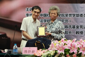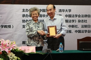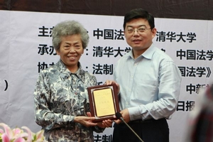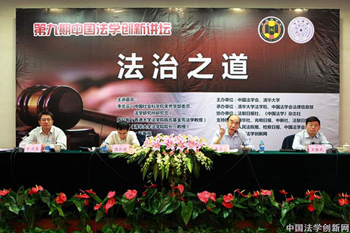中国法学创新网讯 6月6日上午,由中国法学会和清华大学共同主办、法制日报社协办、中国法学会法律信息部和清华大学法学院共同承办的第9期中国法学创新讲坛在清华大学隆重举行。围绕“法治之道”的主题,主讲嘉宾中国社会科学院荣誉学部委员李步云教授、香港大学法学院陈弘毅教授、清华大学法学院王振民教授,为到场的近200名师生奉献了一场异彩纷呈的学术盛宴。中国法学会常务副会长刘飏同志出席讲坛并为主讲嘉宾颁发演讲纪念牌。讲坛由清华大学法学院副院长申卫星教授主持。讲坛历时3个多小时,3位主讲嘉宾对法治的内涵、法治的目标、法治的实现路径、中西方法治理论的比较等重大问题发表了精彩的见解,并与在场听众展开了交流。讲坛取得圆满成功。