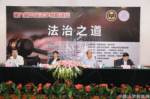 尊敬的中国法学会刘飏常务副会长,尊敬的三位主讲嘉宾,各位老师,各位同学,大家上午好!第9期中国法学创新讲坛现在开始。本期讲坛之所以选取“法治之道”为主题,乃是因为我们认为中国梦最为重要的是法治梦。前不久清华大学法学院也以中国梦、法治梦为主题举行了博士生论坛。党的十八大把法治推到了前所未有的高度,我们法学界、法律界要万众一心,为中华民族早日实现法治梦而共同努力。