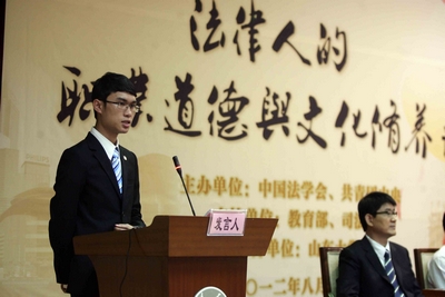 8月17日,由中国法学会、共青团中央主办,司法部、教育部协办,山东大学承办的2012年港澳与内地青年法律交流周“法律人的职业道德与文化修养”主题论坛在山东大学举办。山东大学副校长娄红祥出席活动并致辞。