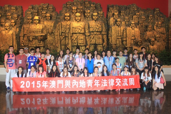 第八届“‘爱祖国、学法律、创和谐’澳门与内地青年法律交流周”于2015年8月9日至13日在北京成功举办。交流周由中国法学会、共青团中央共同主办,司法部、教育部协办,澳门特区政府法务局提供协助。来自澳门大学、澳门科技大学等高校法学院学生、教师,以及北京大学、清华大学部分法学院学生共计近60名团员参加活动。活动还得到北京市监狱管理局、北京市未成年犯管教所、北京大学等接待单位的大力配合。活动具体组织工作由中国法学学术交流中心牵头,与中国法学会法律信息部、中国法学交流基金会合作承担。