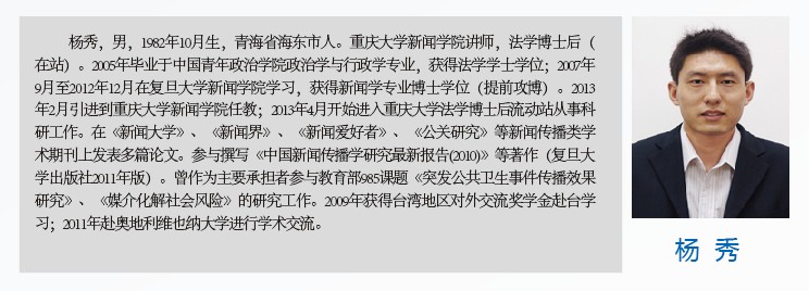 □报告人:杨 秀(重庆大学新闻学院讲师、文学博士、法学博士后研究人员)