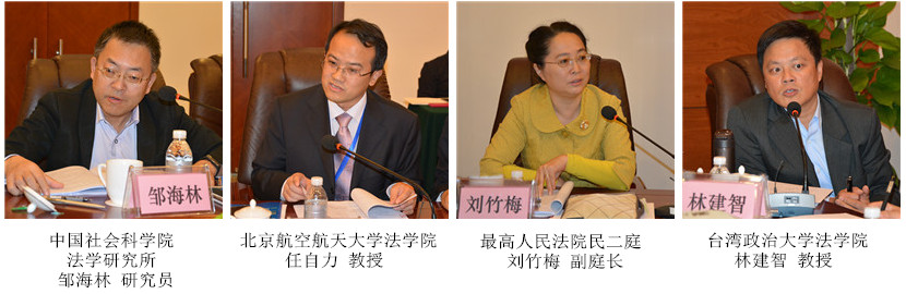 中国法学会保险法学研究会会长、北京大学法学院尹田教授,中国法学会保险法学研究会副会长、对外经济贸易大学国际经贸学院陈欣教授,中国法学会保险法学研究会副会长、中国政法大学管晓峰教授,中国法学会保险法学研究会副会长、中国人民大学法学院贾林青教授,中国法学会保险法学研究会副会长、武汉大学法学院温世扬教授,中国法学会保险法学研究会副会长、中国社会科学院法学研究所邹海林研究员,中国法学会保险法学研究会副会长兼秘书长、北京航空航天大学法学院任自力教授,最高人民法院民二庭刘竹梅副庭长,台湾金融消费评议中心董事长、台湾保险法学会副理事长、台湾政治大学法学院林建智教授,台湾金融消费评议中心总经理、台湾保险法学会秘书长、台湾政治大学法学院张冠群教授,中国法学会保险法学研究会常务理事、广东保监局刘学生副局长,中国法学会保险法学研究会常务理事、西南政法大学民商法学院曹兴权教授,中国法学会保险法学研究会常务理事、中南财经政法大学樊启荣教授,中国法学会保险法学研究会常务理事、华东政法大学法学院方乐华教授,中国法学会保险法学研究会常务理事、大连海事大学法学院院长初北平教授,中国法学会保险法学研究会常务理事、上海交通大学法学院韩长印教授,中国法学会立法学研究会理事、复旦大学法学院刘志刚教授,中国法学会保险法学研究会常务理事、中国平安保险集团有限公司首席律师姚军,中国法学会保险法学研究会副秘书长、北京航空航天大学法学院周学峰副教授等参加会议并发表了意见。中国法学会行政法学研究会副会长、上海交通大学凯原法学院叶必丰教授、最高人民法院梁凤云法官提交了书面修改意见。