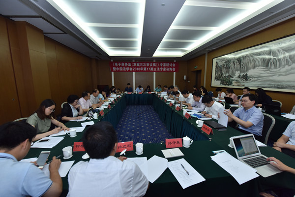 中国法学会商法学研究会会长、中国政法大学民商经济法学院副院长、教授赵旭东,中国法学会民法学研究会副会长、中国人民大学法学院教授杨立新,北京大学法学院副院长、教授薛军,浙江省工商局网监局副局长黄平,中国网络空间研究院副院长、中国网络空间安全协会秘书长、世界互联网大会高级别专家咨询委员会秘书长、北京邮电大学教授李欲晓,清华大学法学院教授王洪亮,对外经济贸易大学法学院教授苏号朋,北京外国语大学法学院教授王文华,上海金融与法律研究院执行院长、研究员傅蔚冈,北京工商大学法学院教授吕来明,京东集团副总裁曲越川,腾讯研究院副秘书长杨乐和研究员柳雁军,美团点评法律政策研究中心总监张腾等相关领域的知名专家学者参加会议并发表修改建议。