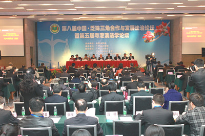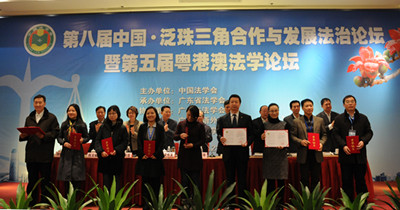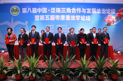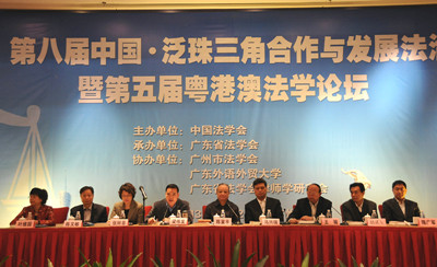 2013年12月21日,由中国法学会主办,广东省法学会承办,广州市法学会、广东外语外贸大学、广东省法学会律师学研究会协办的第八届中国·泛珠三角合作与发展法治论坛暨第五届粤港澳法学论坛在广州举行。中国法学会党组书记、常务副会长陈冀平,广东省委副书记、政法委书记、省社工委主任马兴瑞,广东省法学会会长王骏出席论坛开幕式并致辞。开幕式由中国法学会常务理事、广东省政协副主席梁伟发主持。