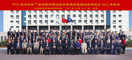 由对外经济贸易大学法学院承办的“WTO法与中国论坛”暨2012年中国法学会世界贸易组织法研究会年会“中国入世第二个十年:新起点与新挑战”于2012年10月20日-21日在对外经济贸易大学和望京昆泰酒店隆重举行。
