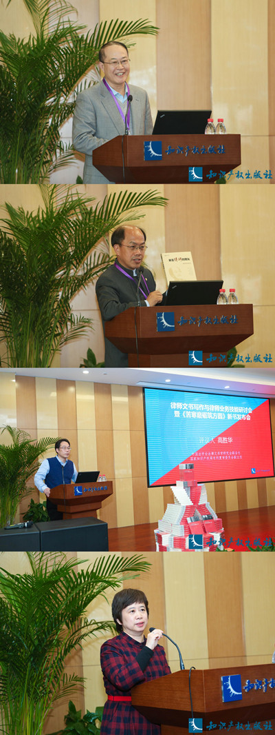 同时,中国法学会法律文书学研究会副会长、国家知识产权局专利复审委员会副主任高胜华也对律师文书写作与演讲能力表达了高度认同。他指出,律师文书写作与演讲对专利复审委员会的专利审查决定的撰写、行政诉讼应诉工作、对于提高专利复审委员会审查决定的撰写水平和到法院出庭应诉水平均有着重要意义。