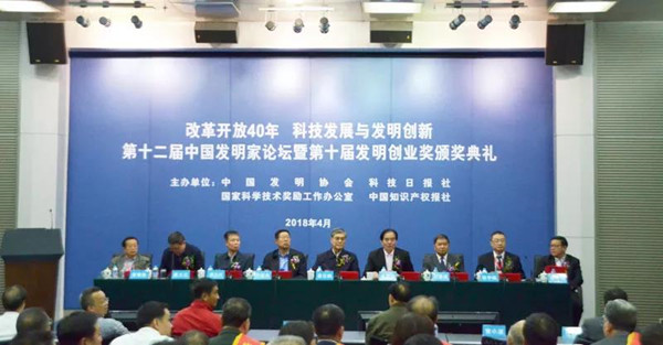 由中国发明协会、科技日报社、国家科学技术奖励工作办公室、中国知识产权报社共同举办的第十二届中国发明家论坛暨第十届发明创业奖颁奖典礼,于2018年4月24日在北京中国知识产权培训中心成功举办。中国发明协会理事长潘云鹤院士、中国发明协会党委书记、常务副理事长兼秘书长余华荣,分别主持了论坛和颁奖典礼。中国科学技术法学会会长房建成院士受邀出席颁奖仪式并为论坛做主旨报告。