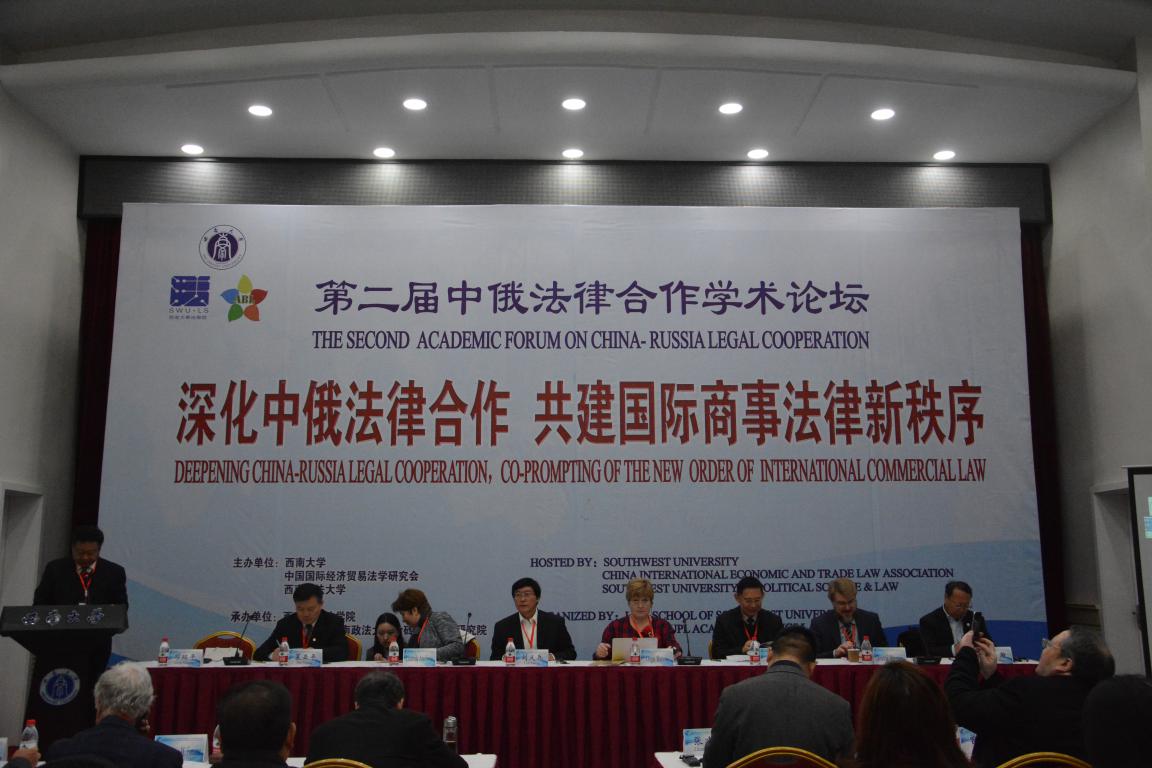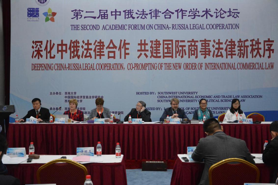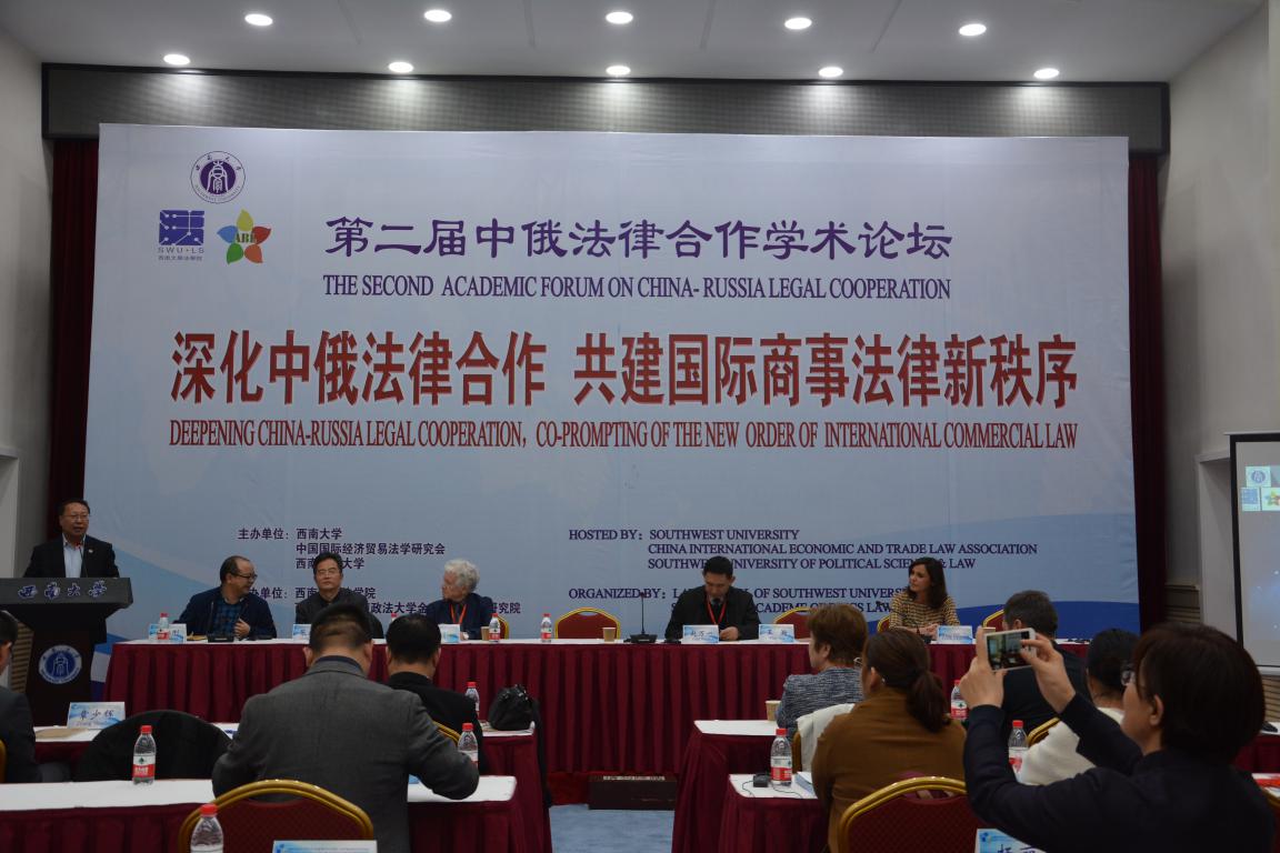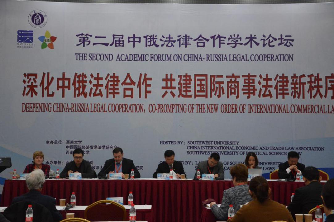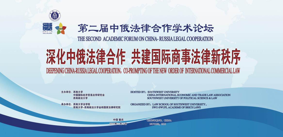 2018年11月25日,由西南大学、中国国际经济贸易法学研究会、西南政法大学主办,西南大学法学院、西南大学——西南政法大学金砖国家法律研究院承办的“第二届中俄法律合作学术论坛”在西南大学桂园宾馆金桂厅成功举行,本届论坛的主题是“深化中俄法律合作 共建国际商事法律新秩序”。
