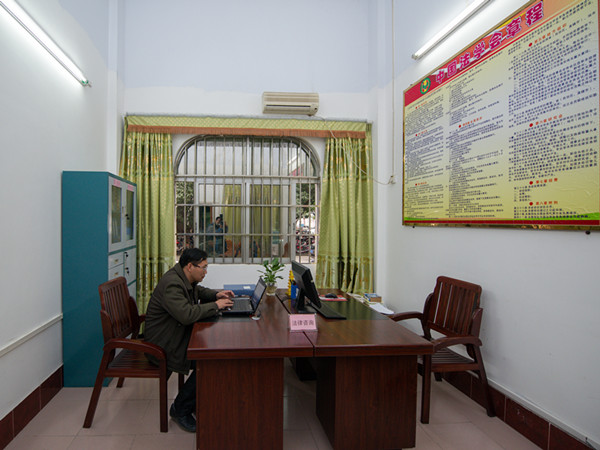 百色法学会值班律师唐伟智在田阳县法律咨询室代理信访工作中心值班。民主与法制社记者周頔摄