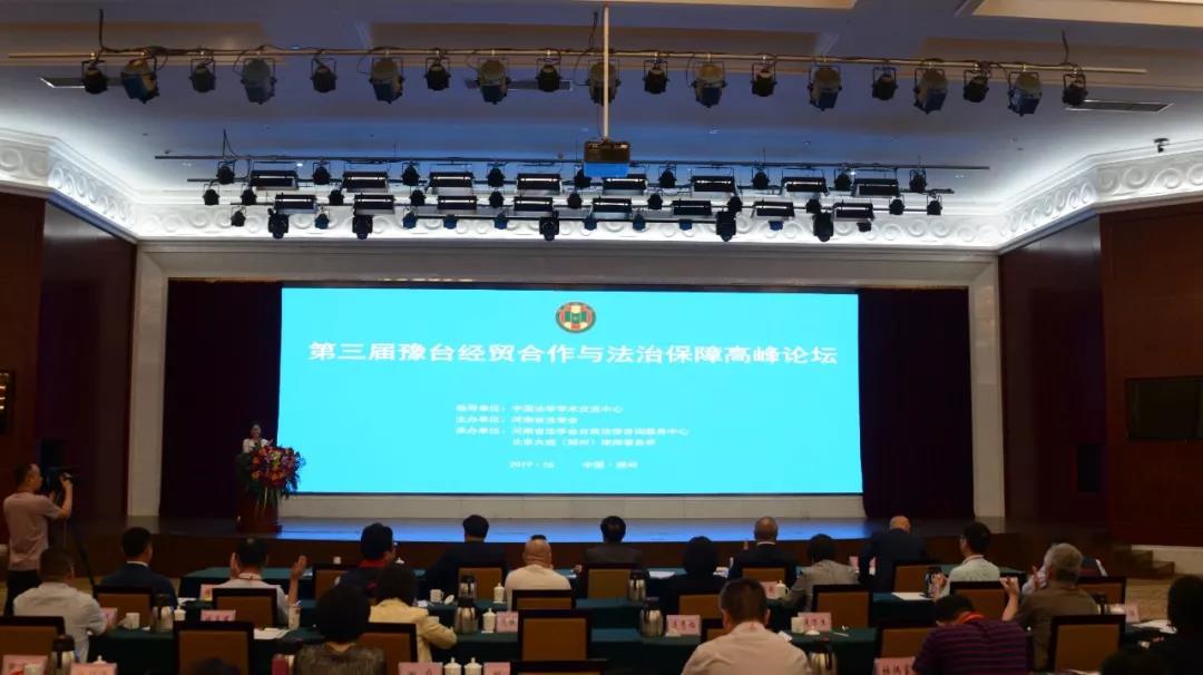 5月24日,由河南省法学会主办,河南省法学会台商法律咨询服务中心和北京大成(郑州)律师事务所共同承办的第三届“豫台经贸合作与法治保障高峰论坛”在郑州成功举办。中国法学学术交流中心主任、海峡两岸关系法学研究会秘书长尹宝虎,河南省法学会党组书记、常务副会长李承先,河南省投资企业协会副会长、郑州市台湾同胞投资企业协会创会会长、郑州丹尼斯百货董事长王任生、北京大成律师事务所高级合伙人韩光等出席论坛。