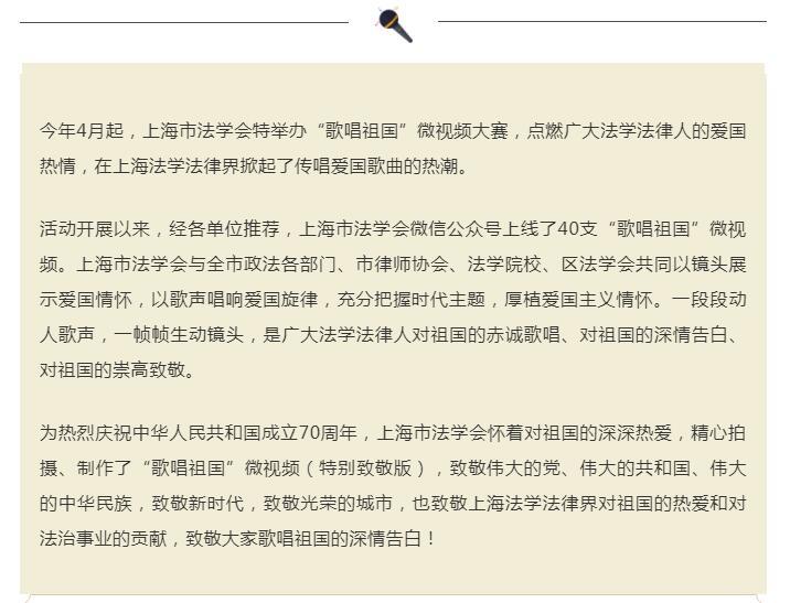 上海市法学会举办“歌唱祖国”微视频大赛