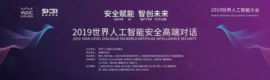 8月29至31日,2019世界人工智能大会在上海世博中心举办。本次活动由国家发展和改革委员会、科学技术部、工业和信息化部、国家互联网信息办公室、中国科学院、中国工程院、上海市人民政府共同主办,赛博研究院承办,腾讯、观安信息、上海社科院互联网研究中心、中国电科网络空间安全研究院、中国欧盟商会协办,平安科技、UCloud优刻得、安恒信息、依图科技、亚信安全、上海控安、翼盾智能、众人科技、斗象科技、碁震KEEN、机器之心等支持。