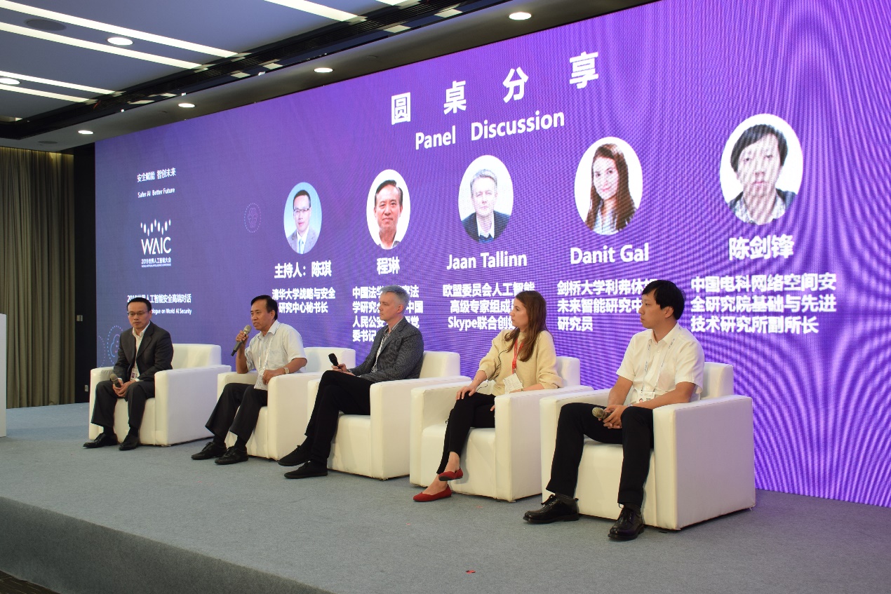 在该主题的圆桌分享环节,清华大学战略与安全研究中心秘书长陈琪担任主持人。中国法学会警察法学研究会会长程琳、欧盟委员会人工智能高级专家组成员Jaan Tallinn、剑桥大学利弗休姆未来智能研究中心研究员Danit Gal、中国电科网络空间安全研究院基础先进研究所副所长陈剑锋围绕人工智能的发展趋势以及对国家安全、产业安全、社会治理等带来的挑战与机遇等问题深入交流。