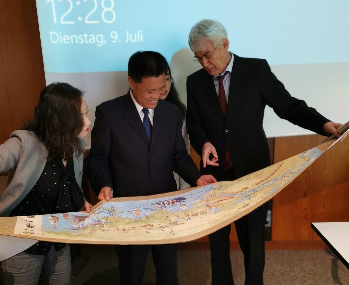 李如林副会长向马普外国和国际刑法研究所所长、国际刑法学协会德国分会主席乌尔里希•希伯教授讲解“一带一路”