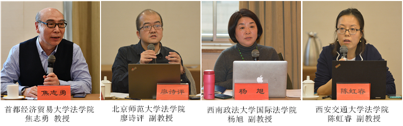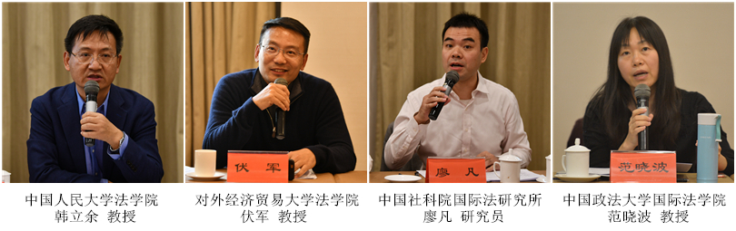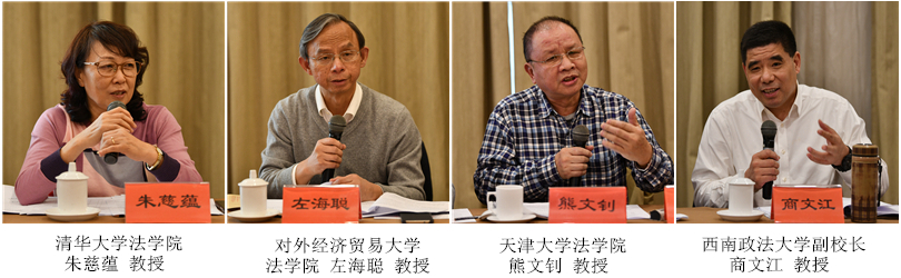中国法学会商法学研究会常务副会长、清华大学法学院朱慈蕴教授,中国法学会世界贸易组织法研究会副会长、对外经济贸易大学法学院左海聪教授,中国法学会立法学研究会副会长、天津大学法学院熊文钊教授,中国民主建国会中央委员会监督委员会委员、重庆市委副主委、西南政法大学副校长商文江教授,中国法学会世界贸易组织法研究会副会长、中国人民大学法学院韩立余教授,中国法学会国际经济贸易法学研究会副秘书长、常务理事、对外经济贸易大学法学院伏军教授,中国法学会国际经济贸易法学研究会理事、中国社科院国际法研究所廖凡研究员,中国法学会世界贸易组织法研究会理事、中国政法大学国际法学院范晓波教授,首都经济贸易大学法学院焦志勇教授,中国法学会世界贸易组织法研究会常务理事、北京师范大学法学院廖诗评副教授,西南政法大学国际法学院杨旭副教授,中国国际经济法学会理事、西安交通大学法学院陈虹睿副教授参加会议并发表修改建议。中国法学会国际经济贸易法学研究会副会长、对外经济贸易大学法学院丁丁教授提交了书面意见。