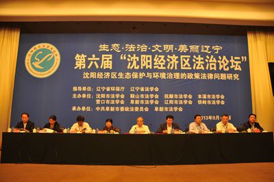 “沈阳经济区法治论坛”由辽宁中部的沈阳、鞍山、抚顺、本溪、营口、阜新、辽阳、铁岭八市法学会联合主办,轮流承办,主旨在围绕沈阳经济区建设发展中的重大问题从政策法律层面开展研究,为省委、省政府及经济区八市领导及有关部门决策提供智力支持和法治支撑。本届论坛由省环保厅、省法学会联合指导,阜新市委政法委、市法学会具体承办,主题为“生态、法治、文明,美丽辽宁—沈阳经济区环境保护与生态建设的政策法律问题研究”。