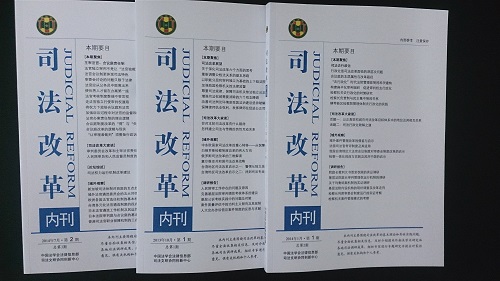 《司法改革》(内刊)围绕司法改革的基本理论和具体实践问题,广泛收集司法改革相关信息,及时介绍国内外相关学术动态和各地司法调研成果,组织专家进行专题研究并提出对策性意见。自编辑出版以来,《司法改革》(内刊)分别聚焦“司法改革展望”、“司法去行政化”、“主审法官、合议庭责任制”等专题展开研讨、提出咨询意见。