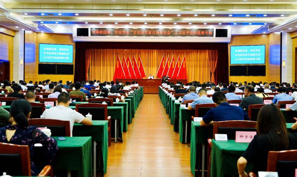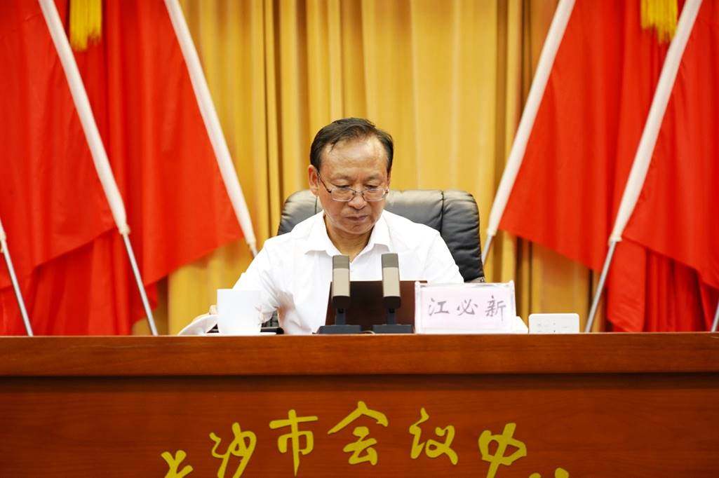 7月26日,长沙市委政法委、市法学会举办“百名法学家百场报告会”之习近平法治思想专场。全国人民代表大会宪法和法律委员会副主任委员、中国法学会副会长江必新受邀授课,市委副书记、市委政法委书记阚保勇主持并讲话,副市长、市公安局局长刘新良,市中级人民法院院长肖新平,市人民检察院检察长王勋爵出席。