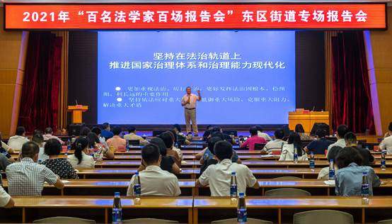 9月13日,广东省中山市法学会联合东区街道和南区街道举办了两场“深入学习宣传贯彻习近平法治思想”专题报告会。报告会由省委党校(广东行政学院)应急管理教研部主任、法治广东研究中心主任、教授宋儒亮进行专题辅导,中山市法学会、东区街道和南区街道党政领导班子成员,机关各部门、事业单位负责人,各社区“两委”干部约200人聆听了报告。