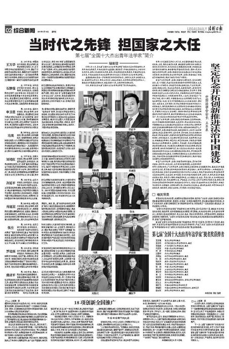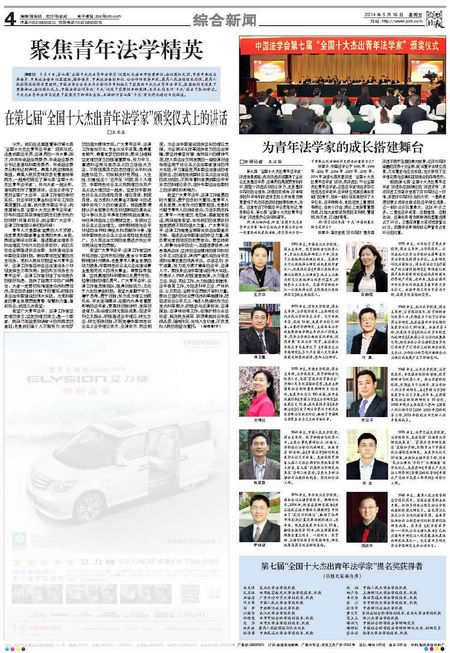 《法制日报》、《人民法院报》、《检察日报》整版报道第七届“全国十大杰出青年法学家”