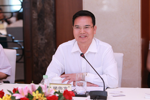 梁伟发会长向代表团介绍我省法治建设及省法学会工作开展情况