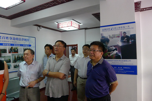 7月31日上午,王东华会长来到哈尔滨市法学会检查指导“法律诊所”工作,实地参观了市儿童医院、市第一人民医院法律诊所,以及兆麟街道兆麟社区、花园街道繁荣社区、大成街道新吉社区法律诊所,并听取哈尔滨市法学会、南岗区法学会及有关法律诊所的工作汇报。省法学会专职副会长单宝臣,哈尔滨市委常委、政法委书记王小溪,哈尔滨市法学会会长陆文君陪同检查工作。
