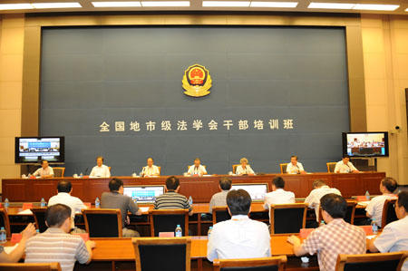 6月17日,中国法学会举办首届全国地市级法学会干部培训班。中共中央政治局委员、中央政法委书记孟建柱就举办此次培训班作出重要批示:“法学会在全面推进依法治国,建设社会主义法治国家进程中具有重要作用,要从全局和战略的高度,充分认识加强法学会工作的重要性和必要性。中国法学会举办法学会干部培训班很有必要。希望法学会努力加强自身建设,不断提高政治和业务素质,锐意进取、开拓创新,为全面建成小康社会作出新的更大的贡献。”
