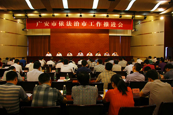 6月11日上午,广安市召开依法治市工作推进会,会议传达了依法治省工作川东北片区推进会精神,认真总结了本市依法治市工作前期情况,深刻分析了工作中存在的问题,安排部署了下步工作。