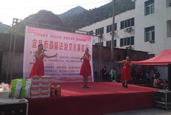 百里丹水锦屏开,十里画廊入梦来。法治文化送真爱,欢歌笑语传村寨。5月6日,“宜昌市首届法治文化基层行”活动首站来到长阳高家堰镇,以一场法治文艺演出,一次现场科技、法律咨询服务,一次法治书法摄影巡展,一次法治、农技书籍赠送,一次困难群众慰问为内容的活动,使当地百姓美美地享受了一顿法治文化大餐。