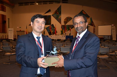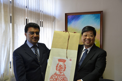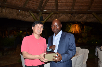 向毛里求斯司法部长兼总检察长纳特•瓦尔马赠送纪念品