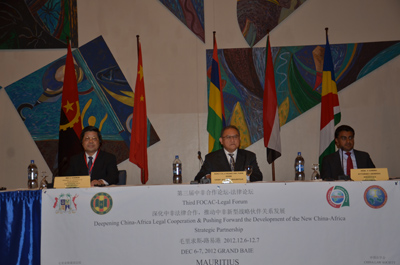 2012年12月6日至7日,由中国法学会与毛里求斯最高法院共同主办,中国驻毛里求斯使馆、毛里求斯总检察长办公室、毛里求斯公诉办公室、毛里求斯律师协会、毛里求斯法学会和毛里求斯公证委员会协办的第三届“中非合作论坛-法律论坛”在毛里求斯路易港举行。来自中国及毛里求斯、安哥拉、贝宁、埃塞俄比亚、塞舌尔、南非、赞比亚、津巴布韦等国的200多名法学法律界代表参加了此次盛会。