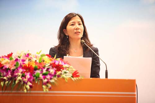 对外经济贸易大学法学院副院长石静霞宣读任建新名誉会长贺词