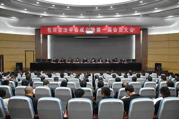 市法学会张林会长代表市法学会对苍南县法学会成立表示热烈的祝贺,并对我县法学会今后工作提了三点希望:一是增强做好法学会工作的责任感和使命感。要求广大法学、法律工作者充分认识法学会和法学研究工作的重要性,充分认识自己所肩负的历史使命和重任,不断增强对社会主义法治理念的政治认同、理论认同和感情认同,主动适应新形势、新任务,努力在服务科学发展、维护社会稳定、推进平安建设、构建和谐社会的历史实践中,不断开创法学会和法学研究工作的新局面。二是提升服务中心工作的能力和水平。要紧紧围绕党委、政府工作大局中迫切需要解决的重大法治实践问题和人民群众广泛关心关注、亟待解决的现实问题,积极组织开展应用法律对策的研究,使法学理论研究更好地为民主法制建设服务、为经济社会平稳较快发展服务。要深入研究探讨“平安苍南”、“法治苍南”建设中出现的亟需解决的重大理论和实践问题,努力推动法学研究繁荣发展。三是加强法学会自身建设。要以此次成立大会为契机,进一步抓好班子、带好队伍、夯实基础,为繁荣法学研究提供有力保障。要切实掌握苍南法学研究和法治实践的人才结构和现状,健全人才培养机制,加强信息资源的整合和服务,加大对青年法学、法律人才的培养力度。