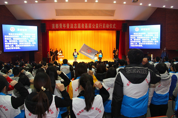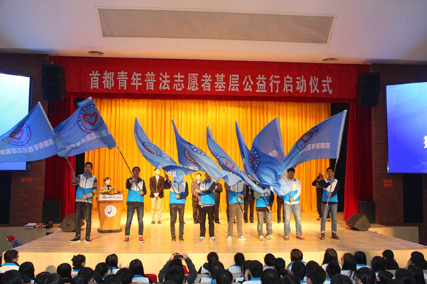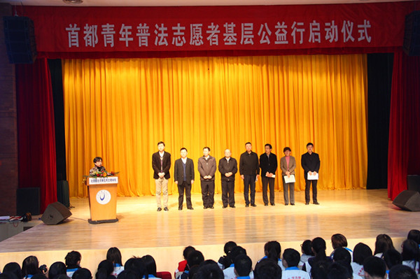 11月16日,北京市法学会在北京联合大学应用文理学院报告厅举办首都青年普法志愿者基层公益行启动仪式