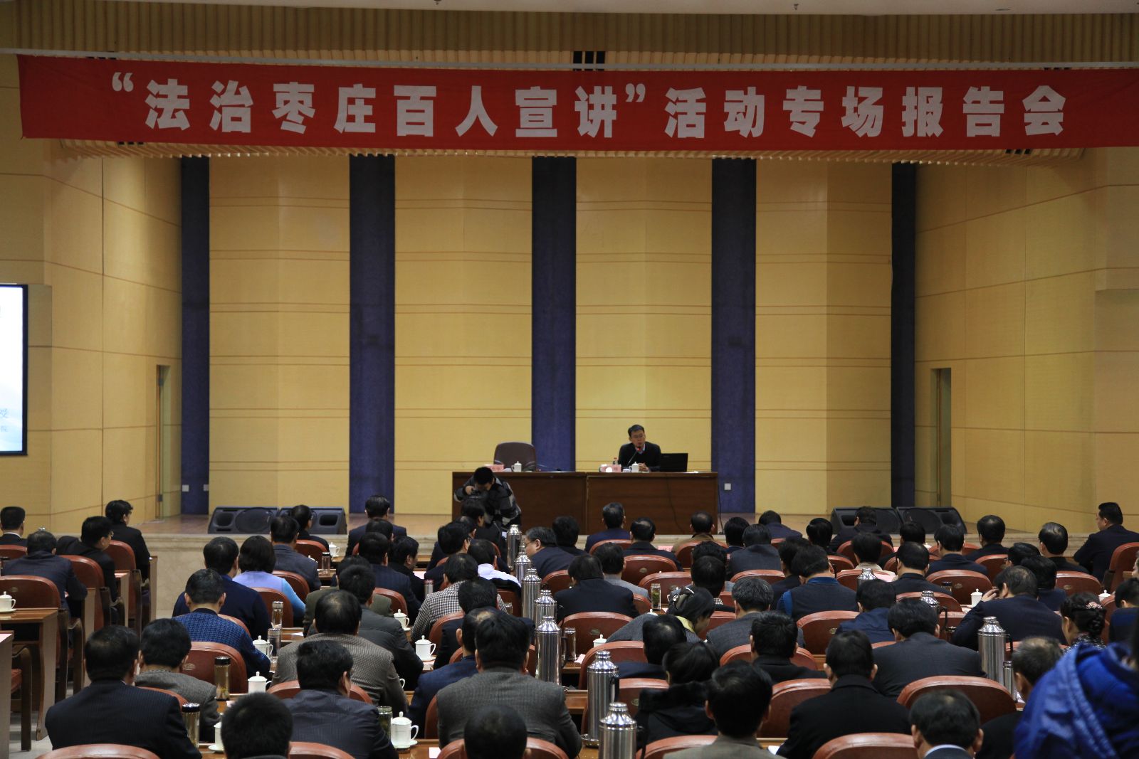 12月19日,枣庄市委、市法学会举办“法治枣庄百人宣讲”市委专场报告会